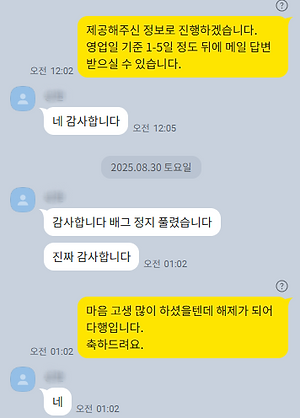 저희가 알려드리는 정보를 따라주시면서 기다려주세요.
